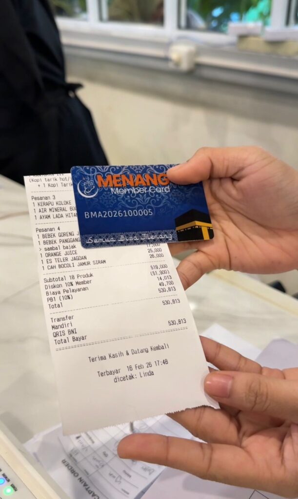Terbaru, ada diskon khusus untuk member Menang Member Card yang menikmati hidangan di Teko Kopi Arifin Ahmad dan Soekarno Hatta.
